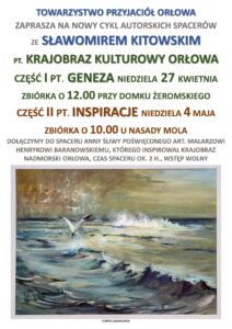 Zapraszamy w niedzielę 4 maja na drugi spacer historyczny ze Sławomirem Kitowskim w nowym cyklu „Krajobraz kulturowy Orłowa” pt. Inspiracje. Startujemy tym razem już o godz. 10.00, zbiórka przy molo orłowskim, gdzie połączymy siły ze spacerem poświęconym twórczości malarskiej Henryka Baranowskiego. Nie muszę dodawać, że inspirował się morskim krajobrazem Orłowa i Gdyni, ale o tym dowiemy się od kustosza dr Anny Śliwy z Muzeum Miasta Gdyni.